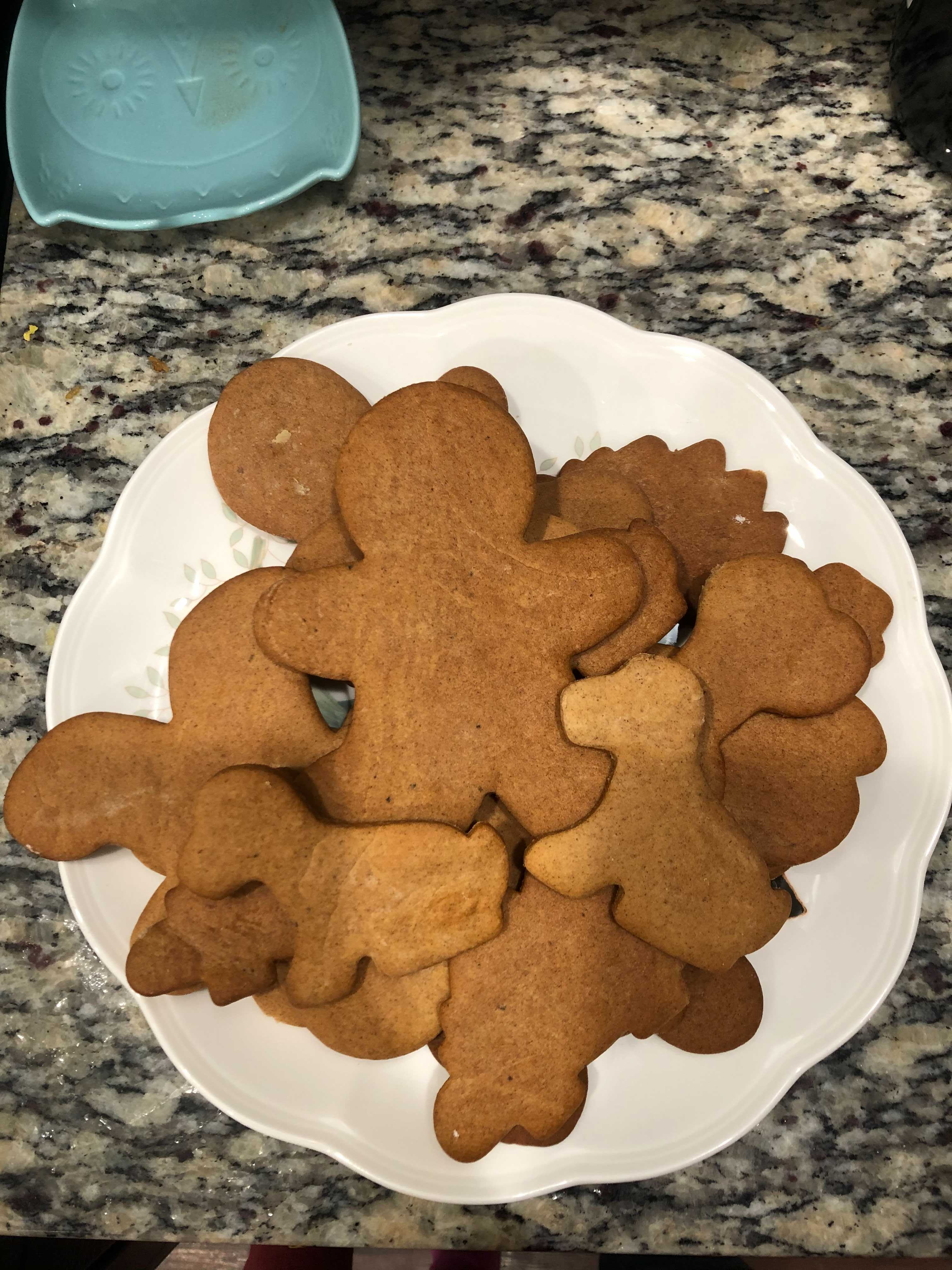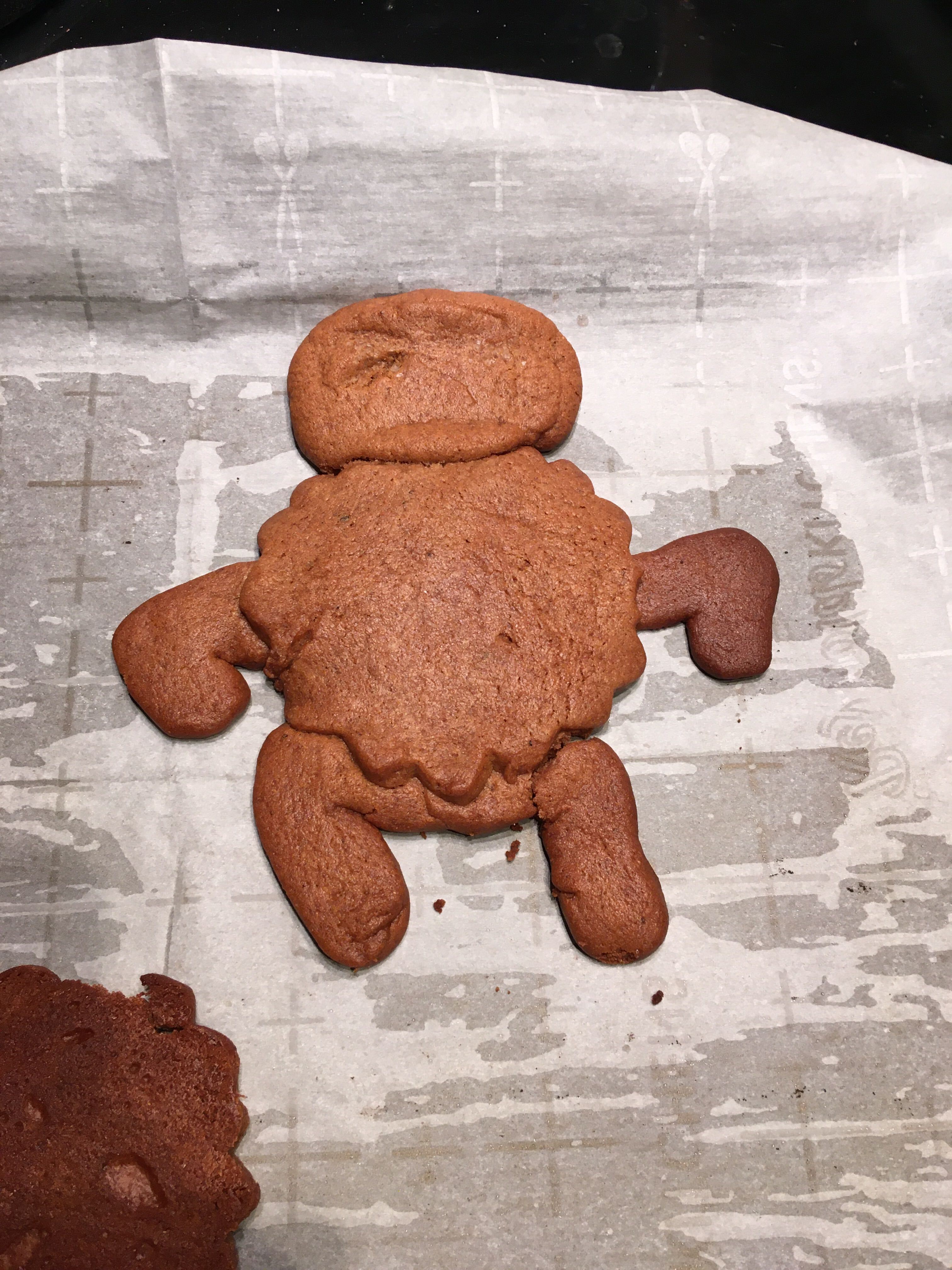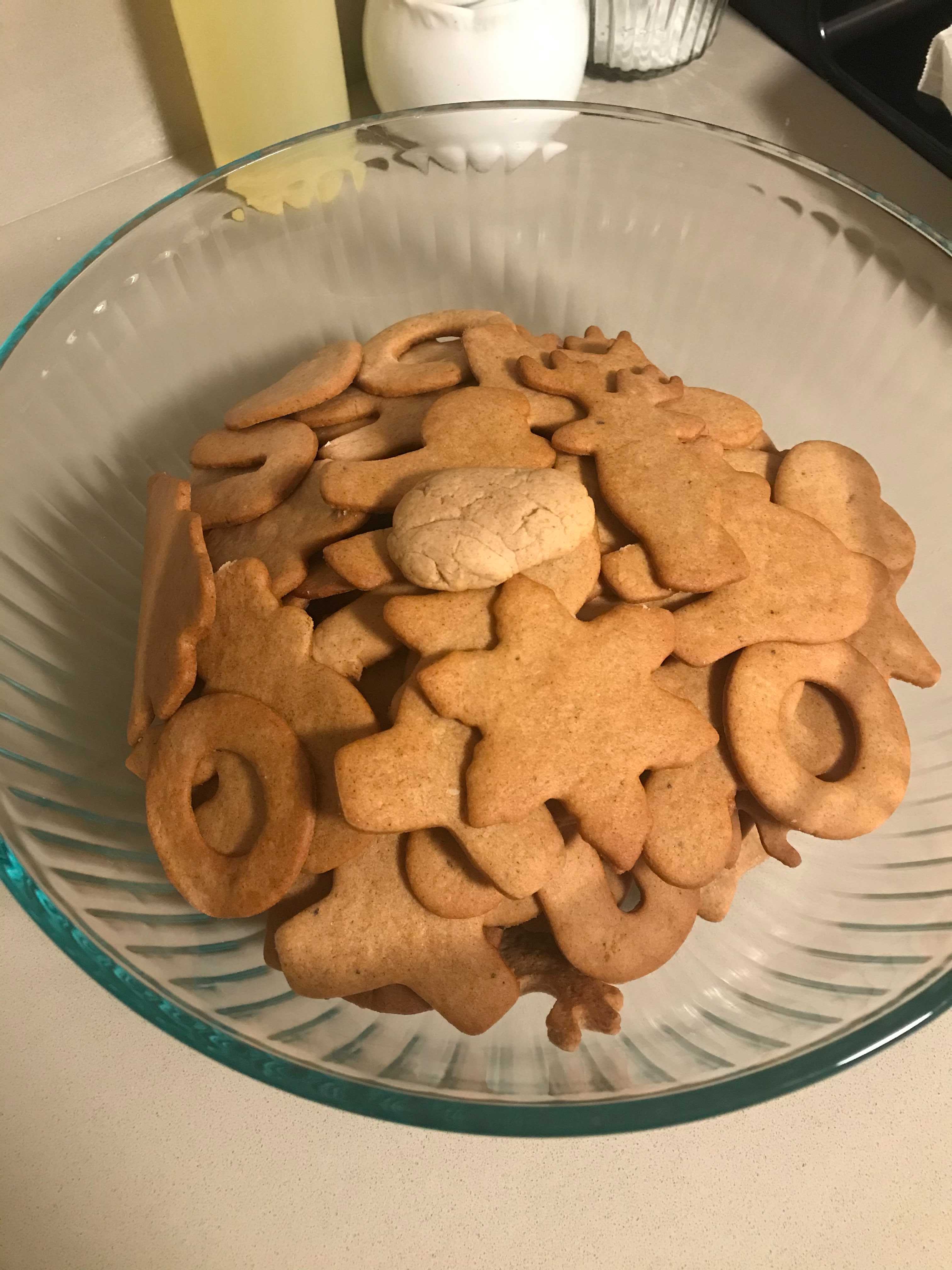 Ula’s gingerbread. She made them thin, cut out 40, and still finished before everyone else. That’s a rock in the middle.